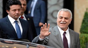 A man counts stacks of Iranian rials on a street in Kerbala